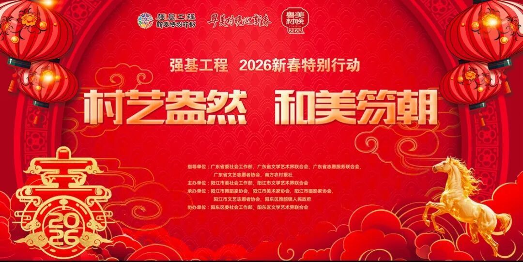 据悉,2026“‘粤美村晚’迎新春”广东省文艺志愿服务活动由广东省委社会工作部指导、广东省文学艺术界联合会和广东省志愿服务联合会主办,广东省文艺志愿者协会、南方农村报社承办。活动以“我为家乡办村晚”为主题,旨在激发基层文化内生动力,鼓励群众成为乡村文化建设的组织者、参与者与展示者。活动将在全省21个地市遴选30多个示范点,涵盖古村落、红色村、非遗重点村、文旅融合典型村等,深度融合乡土文艺、非遗技艺、民俗节庆、红色记忆与新时代乡村故事,打造一批具有岭南风韵、群众喜爱、传播广泛的乡村文化盛会,为广东高质量发展注入文化动能。